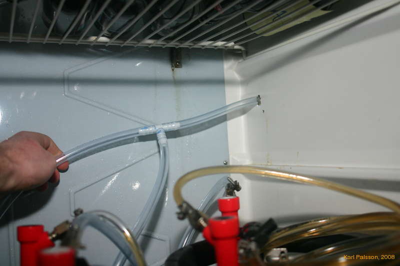 I always wanted to keep the gas bottle outside the fridge, just seemed more useful that way. Who wants to use up valuable beer space keeping a bottle of gas cold? I have currently gone fully ghetto, and just drilled (some small holes and some pliers to make one big hole) through the side of the fridge. I used a hand drill, so I never really felt in any danger of hitting any coolant lines, and I don't think any go in the sides of this fridge anyway.