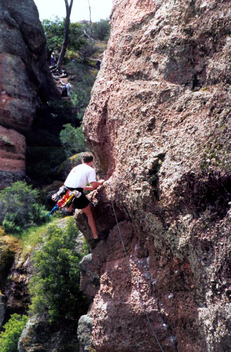 My first outdoor climbing trip in the states, it only took me two and a half months. I went to pinnacles with a group of cisco people and some colleagues of said cisco folk. I wasn't as taken with pinnacles as I would have hoped. Some of it looked interesting, but not enough of it leaped out saying, "CLIMB ME!" for my liking. Some of the classic easy routes were appealing, but there were no hard inspiring lines. At least, not where we were, I sincerely hope that I get to see a better part on another trip.
