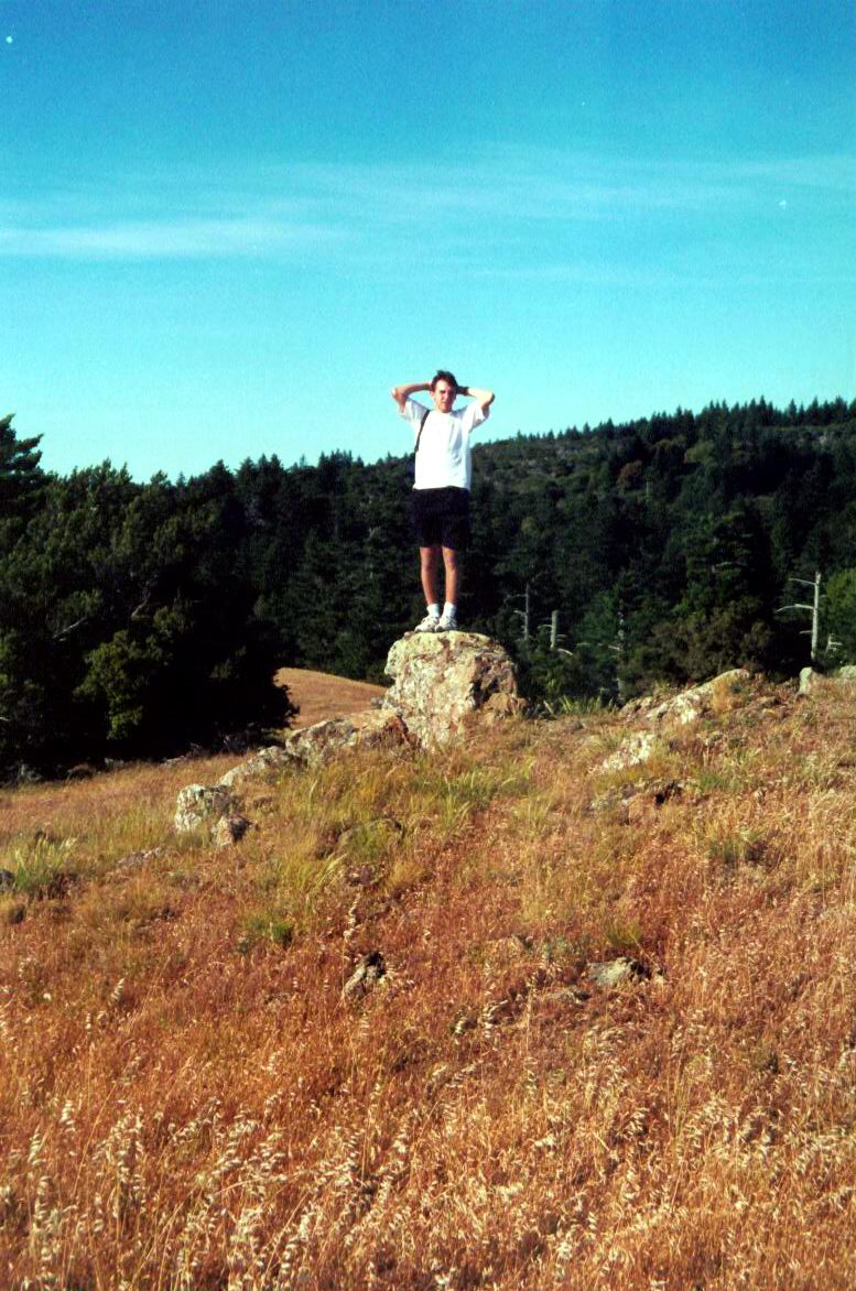 The "Car Ad" section of the Mt Tamalpais road. It had a little pullout with a rough track up onto a knoll. Lovely, lovely place, at a lovely time of the afternoon. Featuring Mike and Marie.