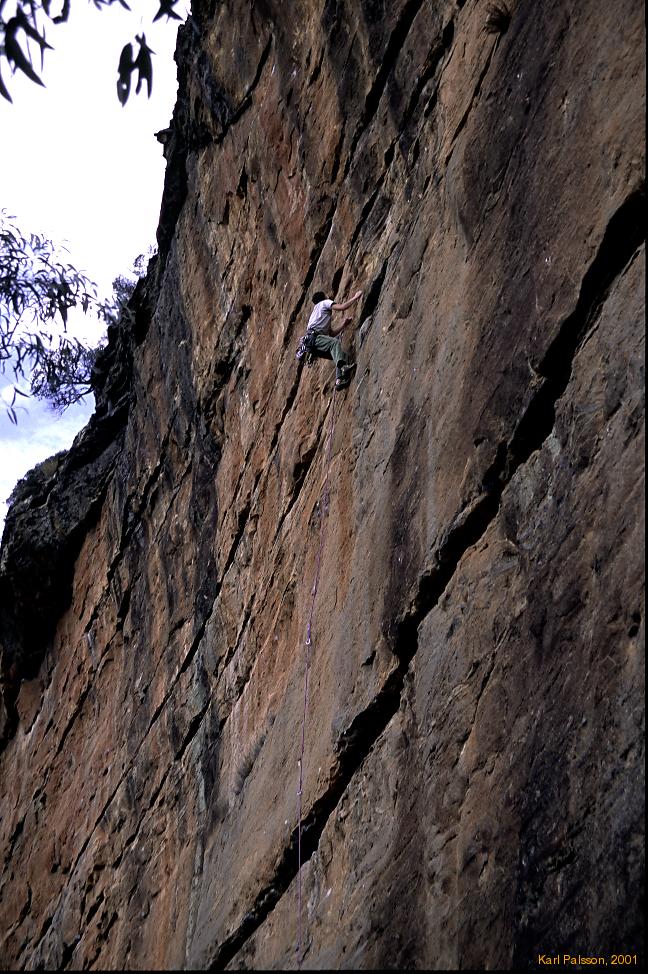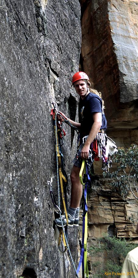 How can you pass up on a UQRC Blue Mountains Trip?! I couldn't, and fiddled dates and vacation time to get myself there as part of my christmas trip after my first year working in San Jose. The Blue Mountains will always be one of my favourite spots in the whole world, and the uqrc post exam climbing trips are one of the best ways to enjoy it. Unless you're me, who has a 50% strike rate of climbing stopping injuries. (Torn ligament '99, 12 stitches gash in palm '01) But it's still fun. And I still manage to do a bit of climbing at least.