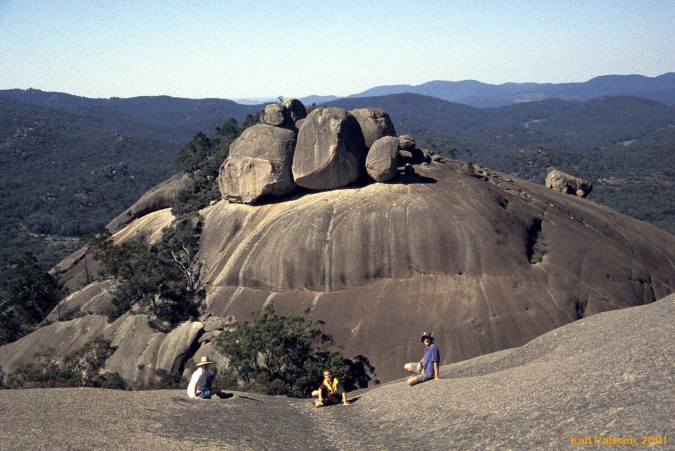 Mum had already planned our trip out to the second pyramid, which was wonderful, somehow I'd never quite gotten out there, and she wanted to go with me, so what better time than now! We headed out one afternoon, so we could have a full day, and left early (7am or so) It ended up being surprisingly easy, and we were back in brisbane by 3pm. We could have gone out, blitzed the second pyramid and been home quite comfortably in one day, but it would have meant 6 hours driving between mum and I. The second pyramid is lovely, and it was especially lovely to be out at girraween, in summer, and have it not be hot. The benefits of being up early. I wish I could do it here, but it just doesn't happen, not when you're writing up captions to webpages full of pictures at 1am. The second pyramid was totally different to the first pyramid. Almost no chunks of loose rock, just rippled granite, as far as the eye could see. A lot more like Billy Goat Hill than the first pyramid. A huge expanse of granite that you could just run around on. (except it got steeper the further you ran)