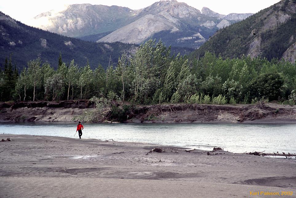 | This was the hardest walking we did. We were on day 4 by now, and certainly weren't as fresh and nimble as we once were. (I think we were probably at steady state though, I could actually have kept walking like this for days if we had had more food, you just sort of get into a rythm) This was Taiga at it's best. We tried walking down by the river, but it was thick vegetation, constant re-routing to avoid the interminable braidings of the creek (Hot Springs Creeek apparently, though very very very few people take the time to even try and look for the springs by the time they are in this area) and uneven ground.