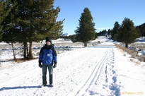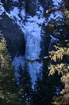 Rent snowshoes for two days, so we can take them with us out to cooke city and back. Drive off around 11, to explore the other sights along the northern loop road. Stop at tower falls and decided to walk ou tthe 2.5 miles to the falls. I have seen pictures of really nice falls, that I'm sure said tower falls, but I'm perhaps mistaken. :) We walk out with the snowshoes in our packs. We are walking out the road from summer, and it is quite well packed. Quite an enjoyable walk, we spot two coyotes, some squirrels, and a few birds. Plenty of elk beside the road. (on the drive) Eventually reach Tower Falls, after passing a family of skiers. I think this route would have been more suited to xc skis. The falls are a bit of a disappointment. From the overlook they are mostly obscured by trees, and the trail to the bottom is closed due to a track washout. Oh well :) It was a nice walk out anyway. We snowshoe back, to try that out, which is fine, but not overly different to walking on that road.
