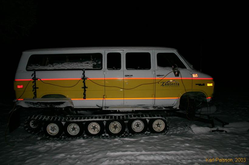 Old style snowcoach (with skis)