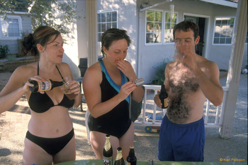 Karalee, Jess and Scott, looking at Scott and Karalee's bedtime pictures