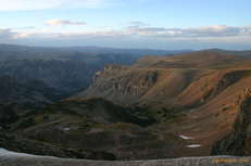 Beartooth Pass area | More high plains on top of the pass | Looking west from the pass area | Sunset over a lake |
