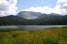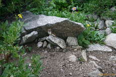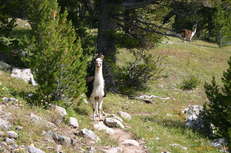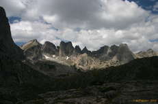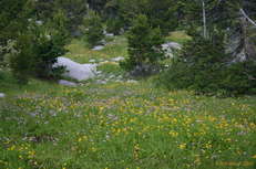 From Big Sandy Lake, it goes up up and over and down again. The cirque is neat, reminded a bit of the Arrigetch Peaks. Only way way way more people. You could spot camps everywhere. Three parties climbing on Pingora, but didn't spot anyone anywhere else. Lots of dogs too. Not really wilderness. Very pretty area. Wildflowers, meadows, mountains. Got some weather in the afternoon, but it cleared again over night.
