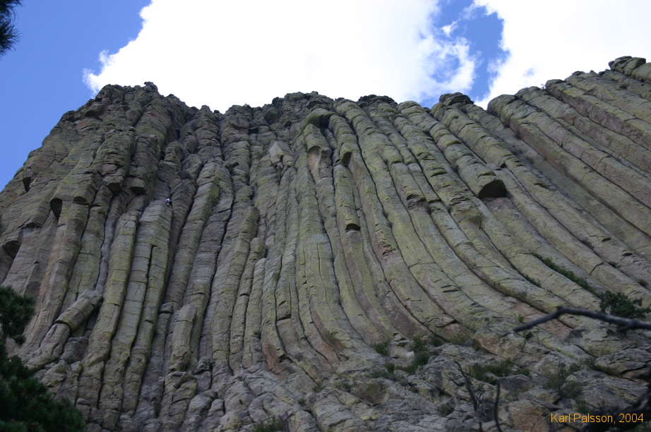 The Durrance route goes up the leaning column then upwards and slightly rightwards