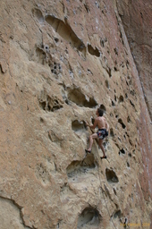 The next day we go hard. We start in the Dihedrals, and do Bunny Face, so Judith can lead something, then I do Jete, take some photos of a guy working on Double Trouble a cool looking 10b arete. I never meet these guys again. I was hoping to see them in the carpark that night, maybe try and sell them some prints, but I was out late. I think the climbers name was Joe, and his friend was from Bend, but who knows.