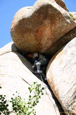 Matt had gotten out of class by now, and came out to join us. We moved into the shade, and climbed the Grand Traverse, which was very unVedauwoo, in that it had narrow cracks, face climbing, and generally broken rock. Scouted the crag, and looked at all sorts of death wish wide cracks, like the Torpedo Tubes, which are rated 5.10, and are allegedly still a massive sandbag. Curt was psyched to do some fists, so we went to find Elevator, a 5.10a, described in the guide as 35 feet of perfect fists.