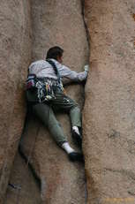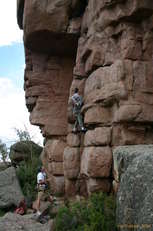 Driving to Vedauwoo, I'd gotten a call from Curt, one of the guides at Devil's Tower. He'd remembered me mentioning Vedauwoo as my next stop, and was down there himself having a few days off climbing by climbing. We hooked up for some climbing for a few days. Worked out well really. He got to put up tough climbs for me, and he had plenty of fat cams.