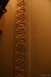 For christmas, the house was full of ginger bread houses. These had all been made by locals, and even some staff. Some were made by girl scouts, and primary schools, some were made by cake makers. All sorts of wonderful gingerbread. They were all up for a silent auction for a charity whose name escapes me at this time. One of the neat things was seeing how the house was set up for entertaining. They had a side door, side stairs and powder room for the ladies. The ladies would enter in here, freshen up, then go upstairs so they could make their grand entrance down the big front stairs into the foyer. Quite an arrangement. Really, a very beautiful house. It was rather dim in here, so there's not many pictures I'm afraid.