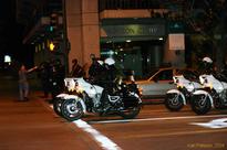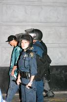We started at the cinebar, which stayed largely quiet and serene all night, as it ususally does. The bouncer was doing a superb job of not letting in crazy wild people who'd been kicked out of other bars, and the barman were giving us all beads anyway. We stepped out a couple of times to walk around the block (or try to) and see what the city was up to. Not only did we get to see allll those cops in riot gear, but there were even choppers! with floodlights sweeping the carparks and other streets. Crazy. Lots of people on the streets, but mostly just all hanging out and chatting. Definitely felt like being at a prison though.