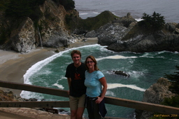 After some shenanigans getting damo to the airport on sunday morning, Lisa and I, James and Junko and Elaine all took off down to Big Sur, crammed into Junko's Mercury Mystique. What a car. We left behind all the luxuries to make it fit, then I at lest slept all the way to Monterey. We got some food for lunch and breakfast, and then continued on down to the camp at Andrew Molera State Park. I was quite surprised to find that they still had plenty of sites, even half way through a holiday weekend.