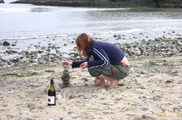 Lisa stacking rocks at Molera Pt