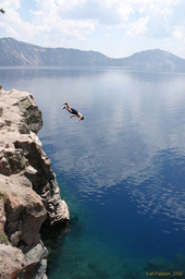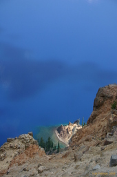 Crater Lake is cool. Very blue. Big, but not so big that it becomes like the sea. Very nice. Took a good hike up Garfield Peak, to see the Phantom Ship. The track is well made, but the rock off to the side looks hideously loose, like all the signs say.