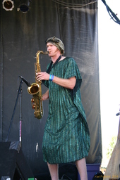 We lived the luxury life in Lisa's big tent and air bed, ate pancakes for breakfast, beer for dinner, and had a generally good time, hula hooping and blowing bubbles. Tokyo Ska Paradise Orchestra were particularly good, as was the Basque band added at the last minute. They're not actually Fermin Muguruza, but he was their lead singer, and they are definitely related. Both of these bands seemed rather out of place, being highly polished slick ska acts, very entertaining. They were before and after very very slow reggae acts. I'd pay money to see these bands again.