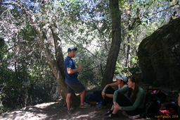 We were hoping to climb the direct route on the Monolith, and set up an easy toprope and a medium toprope there, but funnily enough we weren't fast enough. We were only too late by about 10 minutes it seems, but 10 minutes is plenty. After a brief look at tiburcio's X, we decided that that was going to be too slow for toproping with 8 of us. (It's ~140ft high, and would need both ropes.) The upper crust it was.