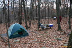 Drove up to the top, but you can't really see much. There's climbing here, but you can't actually climb on pilot mountain itself, just on some side cliffs. Not very clear why. The campsite is mostly deserted, and is really quite nice. Hot showers, flat tent spots, and all quite well spaced out, with beautiful leaf litter everywhere.