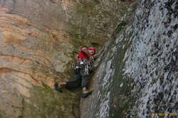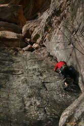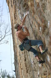So, how is the climbing? After all, that's why I was there right? Well it was ok. I'd go there again, but I wouldn't make it a destination of the US. I think I'd like to see more of the crags though. Climbed at the Fortress on the first day, but didn't get on any of the classics there. What we did was ok, but largely damp, muddy, dusty, blah blah blah. Some very nice moves in the middle of it all, but nothing mind blowing. Scenery is a lot like the blueies. Heavily vegetated valleys, with scarps of sandstone of varying sizes everywhere. Only the roads go around the bottom, instead of along the top :)