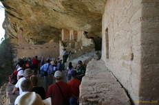 Mesa Verde. I'd camped in the forest between Durango and Mesa Verde, and drove in in the morning. The short summary is, Cool ruins, but lots and lots of people, and lots of ranger hand holding. With good reason I might add, given the number of people they've got. Almost ruins overload though. The area is filled with them, and by the end of the day, stopping at every sight on the loop roads, I was almost burnt out. The ruins are huge, but if you just want to see ruins, I'd recommend going elsewhere.