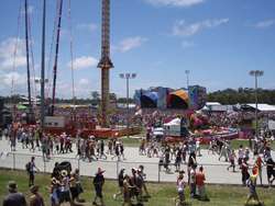 Also saw Kid Koala and the Hilltop Hoods. I really like Kid Koala, he's very into chatting with the crowd, and the music is excellent. Unfortunately about 10 minutes before the end of the set, (so only 2/3 or so into it) the hilltop hoods fans started turning up. What an obnoxious bunch. All shirtless yelling yobbos. They started hurling abuse at Kid Koala and chanting "Hilltop Hilltop" Not much fun, especially with the pushing and shoving. A couple of good firm shoves back made them ease up a bit. All quite funny for a hip hop group that got popular singing a song about ignorance and tolerance. They were ok I guess, but I guess I'm not really big into pure hip hop that much.