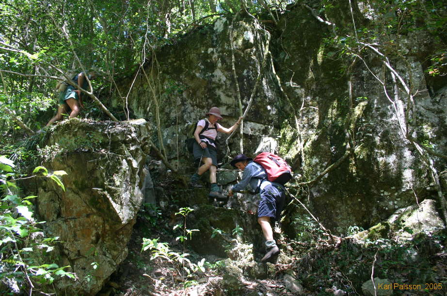 Downclimbing around a waterfall