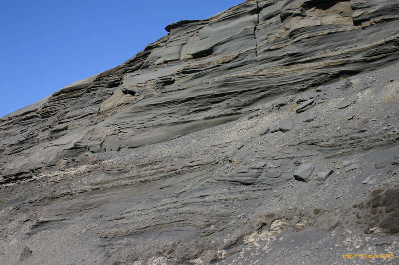 Not quite sandstone yet, exposed by the road cuts at Kárahnjúkar