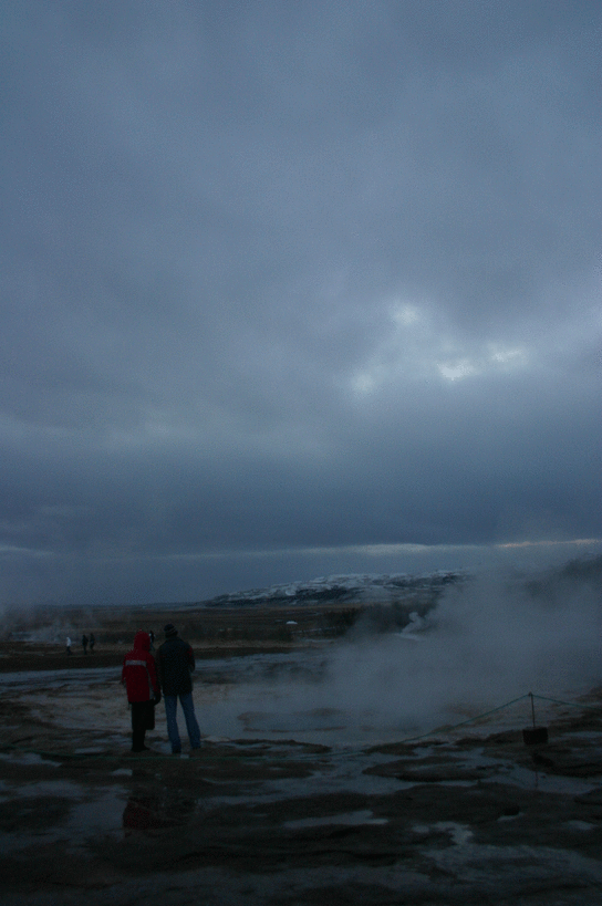 Geysir afterwards, which is always nice. Barely an icelander in sight, just tourists and foreign residents making the most of the free days. This time, unlike in the summer, I actually had camera batteries left! Strokkur was spouting a lot less predictably than in the summer, and gave Mike a good dousing just before we left.