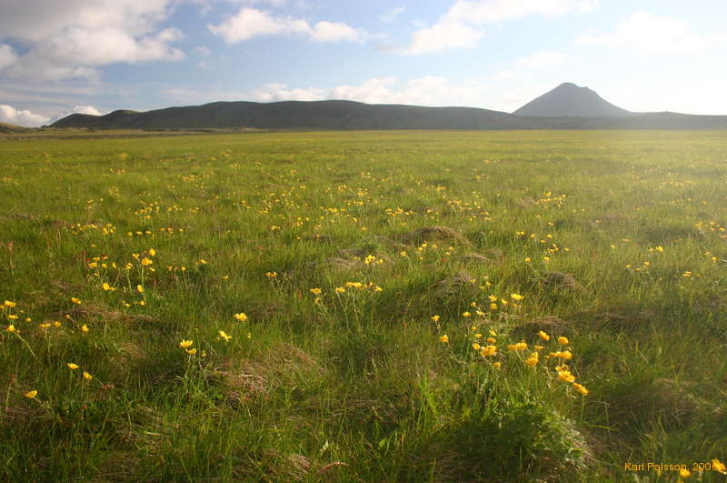 Wide open field of lovely grass, featuring Keilir