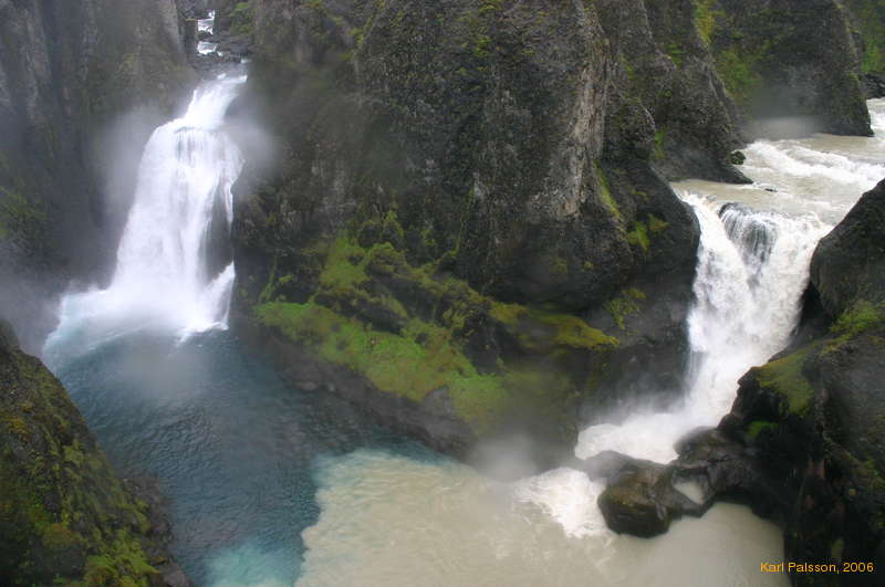 Tvílitahylur, the junction of Núpsárfoss and Hvítárfoss