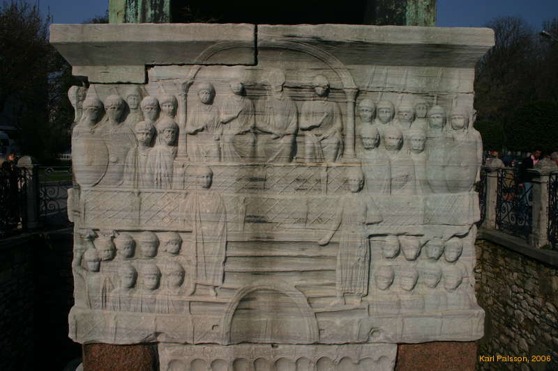 Non-Egyptian carvings around the base