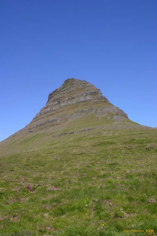 Kirkjufell from the carpark, route is mostly this side of right skyliine.
