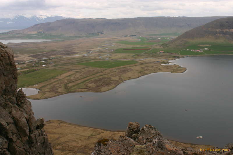 Looking down to Meðalfellsvatn from Miðmundadalshnúkur (Ránef) (specks are fishermen)