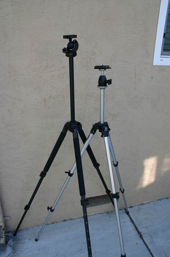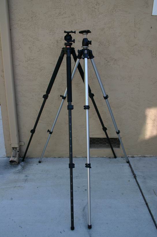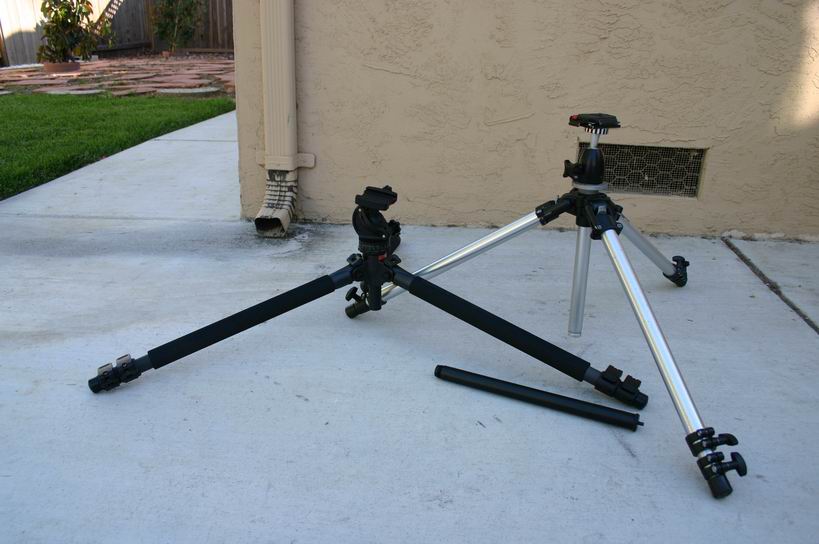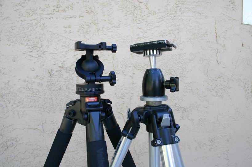 I dislike pan/tilt heads, so both of these tripods have a ball head on them. Because they don't have the same ball head on them, some of the weight difference is eaten up. For these photos, the Bogen had a Strobo FLM ball head (~$40) and the Velbon had an Acratech Ultimate Ballhead. (~$270)